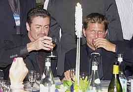 In Geri's Bio there's a picture of the Millinnium party with George and Kenny