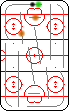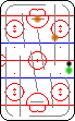 Centr obdrží puk na čepel hole dopředu od pravého křídla. Spousta hráčů používá