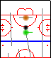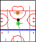 Při tomhle blafáku by se centr neměl prakticky pohnout. Hokejkou by měl puk přesunout z jedné