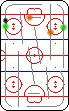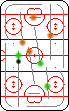 Jde o akci na tři doteky, kdy levé křídlo posílá puk na levého beka podobně