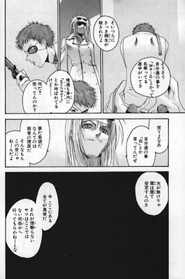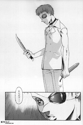 [él gira la cabeza hacia la voz] Estás de buen humor hoy, parece. Raro no verte reclamando que te suelten. [Schuldich le arroja algo a sus pies, navajas y cuchillos] Haga lo que haga, nada de represalias. Si llegás a rasguñar siquiera a Farfarello, te mata. |