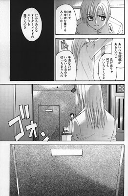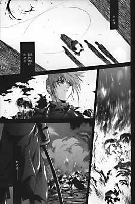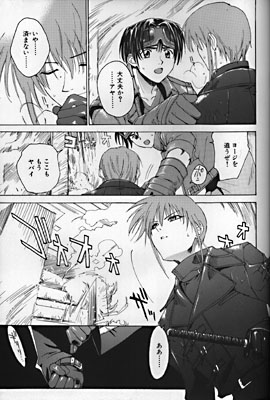 Aya: No puedo volver a lo que era antes. [Un hombre enfrenta a Youji con los brazos extendidos, como para proteger el maniquí sentado tras él, un maniquí de cuerpo de mujer y una cara tan bonita... ] [El alambre atraviesa el espacio, destrozando al hombre y al maniquí por igual] Yo decidí cómo sería... [Omi abre la puerta sin aliento]