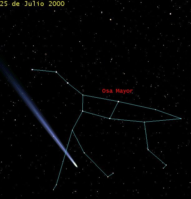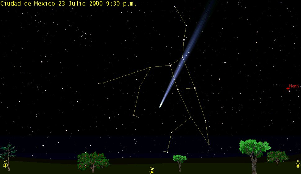 El dia mejor para la observacion de este cometa sera el 23 de Julio 2000, desde la ciudad de Mexico se pudiese observar a partir de las 9:00 p.m. y como hasta las 11:00 p.m. al noroeste, por la region de la osa mayor.