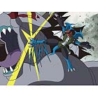 37."The Giant Mega, Qinglongmon"*Description: Blackwargreymon is after the final Holy Stone. With Shakkoumon at their side, the three fusion evolutions, Paildramon, Silphymon, and Shakkoumon, stood in his way. All of them fought Blackwargreymon with all their strength. His determination was so great that he would rather die than lose. When they got him down, Blackwargreymon would just get up and fight again. The digidestined were becoming overwhelmed. To make matters worse, Archnemon and Mummymon were causing chaos. The battle quickly escalates to a life or death fight. Will the digidestined prevail? Will they be able to save the digiworld and the final Holy Stone? What is this mysterious digimon Blackwargreymon is after? The secret of the digital world will finally be made clear…