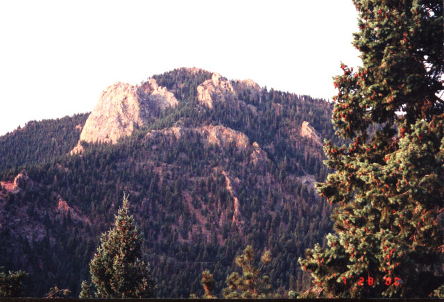 | Despite all the scenery to look at, our eyes were constantly drawn to Pike's Peak. She beckoned us and we heard her siren's call. Now we had to conquer her. She was voluptuos and harsh. She had treasures you yearned to pick, but you would have to pay the price, oh yes. As we headed down Blodgett Peak the way we had come, our thoughts were on her. Despite being a mile higher than Blodgett, we thought Pike's Peak wouldn't be nearly as strenuous. The next day we found out just how wrong we were. It was comforting to know that the next day we would have more company on our hike to conquer Pike's Peak. We were energized and enthusiastic after Blodgett, even if a bit tired. We bouldered down Monument creek back to Trail 713 and back to the car. Pike's Peak would soon be ours! But at what price? |