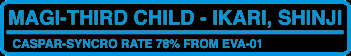 Ikari, Shinji- Third child to be founded by the Marduk report; desiganted pilot of Evangelion EVA-01; 14 years old; son of Ikari, Gendo, supreme commander, NERV. After being requested by his father to come to NERV headquarters, Shinji pilots EVA-01 and defeats the first angel, with no prior training. Now living in Tokyo-3, Gendo and Shinji decide that it is better to live apart, than with each other. Shinji now resides with Misato and Asuka in the suburbs outside of Tokyo-3 |