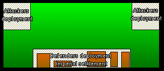 The defender uses the standard mission organisation, only they should probably take an imperial looted vehicle (from the imperial guard army list) since they did just overrun their settlement...