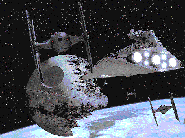 | deathst2.gif | 87 K | Non-Animated. Contains three starfighters, all of which in varying sizes, a Victory-Class Star Destroyer, and the second Death Star, above a part view of a planet. | 640 X 480. |