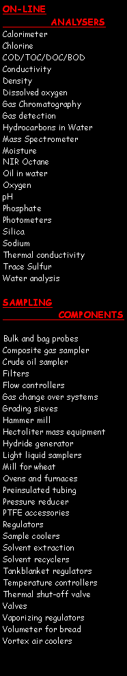 O&O - ANALYTICS ***** ON - LINE & LABORATORY SYSTEMS