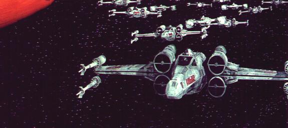 These x-wings have finished a raid and are heading home victorious but in fewer numbers. The TIEs following them aren't exactly throwing them a going away party.