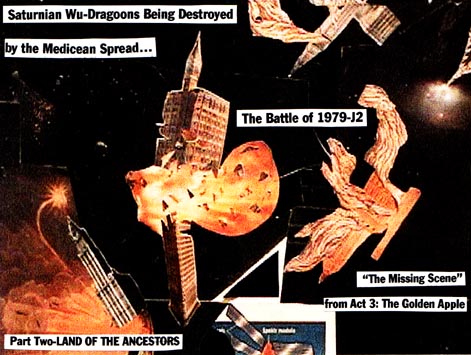 "Before my eyes, I watched as Jupiter became the very 'king of the planets'" "Far above the scorching temperatures and crushing atmospheric pressures encountered in the core of Jupiter, a great city floated in the hydrogen Mindlebrot storms, This city far exceeded the greatest engineering of all the great metropolises in the history of human civilization. This giant floating city was called ZEUS, the high altitude home and base to the new intra-solar rulers of the Solar System." "These new rulers were the Medicean Spread, a trade/mercantile union of the greatest fleets of spaceships in the Solar System. They had once been the fraternal organization of the Calculabraic Order of the Golden Dawn, the mathematical knighthood of outer space who had come from the African nations which had participated in the Great Partition and left the Earth. They had profited immensely from this decision, and their saga of successful ascension, before my eyes, had wrapped up their victory of ruling every trade route, and every port of call between the worlds of the Solar System that needed precious resources to survive." "Their victory rested that day at the Battle of 1979 J-2" | |||||||||||||||||||