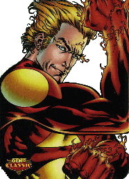 The son of John Lynch. Burnout can project high energy plasma, which burst into flame when exposed to oxygen. He is impervious to heat and can fly by creating thermal updrafts.