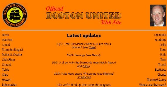 The first impression of this website is that it is designed in the Boston United colours, which is good in theory but the orange background does not look very appealing.