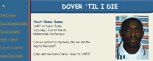 TO READ OTHER Dover Athletic REVIEWS PLEASE CLOSE THIS WINDOW AND CONTINUE FROM THE WINDOW LEFT OPEN BEFORE.