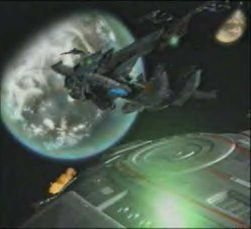 Origin: space. A massive and unique lifeform, delicate in appearance while blindly and insatiably feeding off the life-force of beings and even planetary resources. It could destroy a world in just minutes with its pulverizing energy-beam conversion process, working much like an electromagentic collector. Somehow contacted by Data's brother Lore in 2338, it is known to have wiped out the Omicron Theta colony and its 114 scientists, then 11 more worlds ending with Melona IV until its destruction nearby in 2368. Ironically, just before its death it showed signs of sentience and understanding the different orders of life-energy it had been consuming.(Info by Nikki Bray)