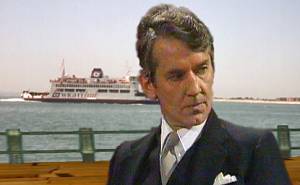 [Time passes. On a boat about a mile off the coast of the village, Chuck is standing