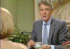[In the main Bates office Tina is having a cup of tea with Alden]