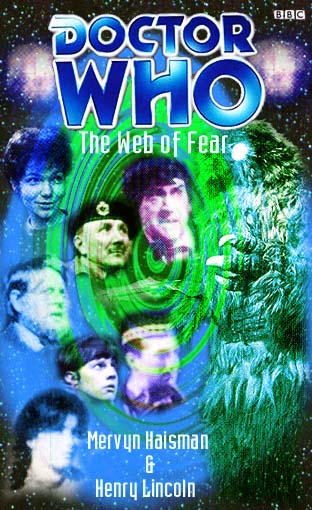 The recent discovery of clips from The Web of Fear inspired me to create a new cover for the story. First I scanned in a telesnap of two Yeti in the tunnels. Next I adapted one of the screen captures posted online of a Yeti with its web gun, by removing an arm and extending the body. I then scanned in another telesnap of the web in action, using this as an overlay over the Yetis, but erasing some of the web so it looks like the Yeti with the web gun is emerging from the web. I copied the web layer, flipped and resized it, using this as web just fired out of the web gun. I then scanned in an image of a control sphere, placing this on the lower left of the cover. Next I scanned in two images of the Doctor, using elements from both to create the Doctor's image. Finally, I placed a blue to khaki colour was over the entire image.
