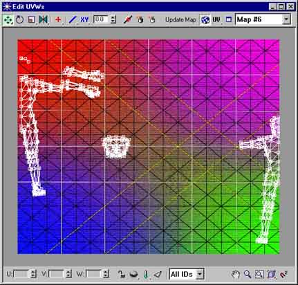 Now we'll start working on the front of the head, by selecting these faces, applying a UVW Map...