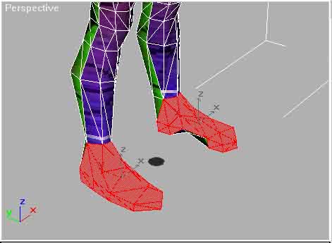 And then the bottom of the feet, apply "UVW Mapping", scale, rotate etc... to fit in to the working space. Remember the "Select Invert" method mentioned before, that will also come in handy here too. |
