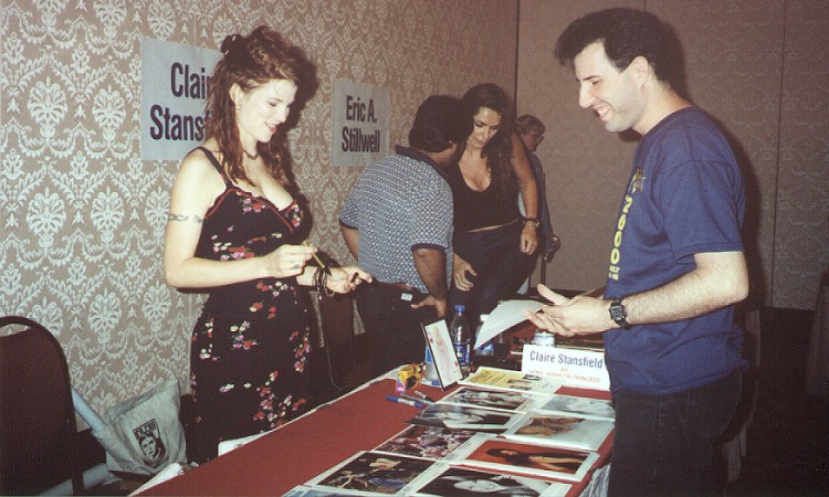 Trying not to melt as I get my picture taken with Claire Stansfield and the adorable Alexandra Tydings (Alti and Aphrodite on ''Xena'') Telling Alexandra that I was very glad Xena didn't kill Aphrodite along with the other gods Posing with Alexandra  :-) Posing with Claire in the autograph line