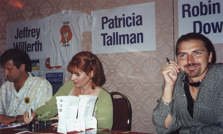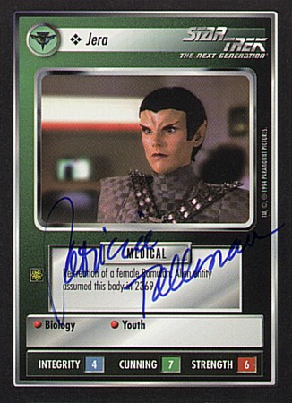 Spocko (from the episode A Piece of the Action) John deLancie (Q) Jeffrey Willerth (Kosh), Patricia Tallman (Lyta Alexander), Robin Atkin-Downes (Byron) Babylon 5 cast photo, now autographed by Jeffrey and Patricia (they're married, by the way) Patricia Tallman as an alien impersonating a Romulan (from the Next Generation customizable card game)