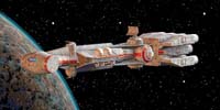 Carrack Cruisers carry 10 heavy turbolasers, 20 ion cannons, and 5 tractor beam projectors. The Anti-starfighter version has 10 heavy turbolasers, 20 laser cannons to replace the ion cannons, and the five tractor beams. A major drawback though, is that the Carrack Cruiser has no hangar bay. Instead, exterior TIE racks carry FIVE TIE fighters. Also, there is insufficient shielding around the power generators. A good hit just aft of the Carrack's mid-line has a good chance of disabling the vessel.