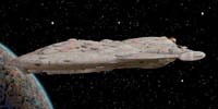 The Mon Calamari Cruiser is the main starship of the New Republic. The Mon Calamari Cruisers were originally pleasure cruisers for the Mon Calamari species. When the Empire targeted Mon Calamari though, Ackbar convinced his world that their starships would be going to a good cause if they donated them to the Rebellion. Several were immeadiently refitted for service in the Rebellion's main fleet.