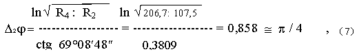 Let's analyse whole series of relations values for radiuses of adjacent orbits for all Solar system planets. For the beginning, while try to obtain regularities, we shall exclude from consideration planets orbits , for which radiuse relation to adjacent one more than on 1,5 standard deviations differ from average. These are Mercury orbit ( 2,34> ( 1,71 + 1,5 X 0,41)) and Pluto one (1,00 < ( 1,71- 1,5 X 0,41)). The remaining row of values is precisely divided on two ones in accordance with value of adjacent orbits radiuses relation: first - from Venus to Mars (1,40 - 1,37) and second - from Mars to Neptune ( 1,63 - 2,03). We shall determine now value of D2j ( angle of dividing the vortex) for next inside from external Vortex circuit ( for planets of "Earth" group ) according to formula (3) through the relation of Mars ( ¹ 4) and Venus ( ¹ 2) orbits radiuses: