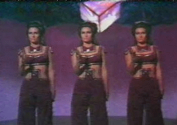 | Editors Notes | Three Kalandan girls have the death-touch. Each girl is programmed to come after one of the landing party. They are controlled by a cube-shaped computer on the ceiling. When a Kalandan girl does touch a human, she immediately destroy the cellular of human body. |