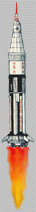 clicando em um dos logotipos. Ao lado, foguete Saturn B |