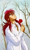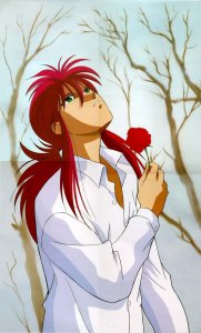 I don't know much about Kurama. I do know that he's a Kitsune who was reborn into a human. He appears capable of taking on his kitsune form from time to time (the silver-haired guy with the fox ears in some of these pics), but I don't know if he really can, or if he becomes a kitsune completely again at some point. To all rumors, he's unclaimed, but he may have more than feelings of just friendship towards one of the cast. *sigh* Knew it was too much to hope one of the cute guys would actually go unclaimed.