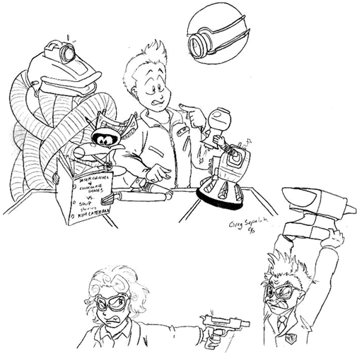 When Mystery Science Theater 3000 The Movie FINALLY came to a local theater, Kevin "Tom Servo" Murphy was there opening night for autographs and questions. I presented him with a copy of this picture, and he really liked it, which was a hell of an ego boost, I?ll tell you that for free. Oh, how I wish I could've made it to one of the conventions. |