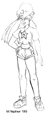 | Sure, she's all over the damn web site, but who is she? Well, she's Japanese-born, a college student, a bit of an extrovert, and constantly (and not too subtly) pushing her sister Mei into getting into a "real relationship" with Mike Sipher. In Warped Space she tends to just tag along for the amusement factor of whatever situations the group finds themselves in. |