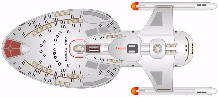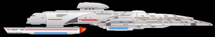 ![]() Similiar to the Prometheus, this ship was designed as a smaller version of the multi-role, multi-vector attack ship. If necessary, the ship has the capability to split into two parts, either of which has full attack and defense capabilities. Both sections also have a fully functional warp drive. It takes a third less time to construct a vessel in this class, though, than it does to build a Prometheus -- one reason why Starfleet likes this design more.