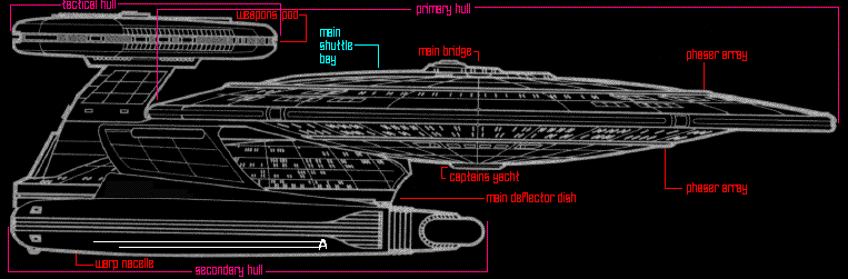 ![]() Type of Federation starship slightly smaller than a Galaxy class. This starship class features a large upper equipment module, usually for sensors, that could be customized for different mission profiles. Test platform for the Galaxy-Class components. The Equipment module can be fitted with sensors, weapons, crew quarters or cargo holds, depending on the mission specifications. Serving as the workhorse of the fleet from the mid 2300s to the present.