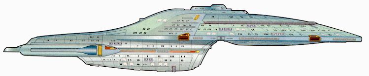 ![]() One of the newest class of starships. She has 15 decks and only has a crew complement of 140 personnel. She also has a sustainable crusing velocity of warp 9.975. The prototype, Intrepid, is the third starship to bear the name. Voyager is also an Intrepid class starship. This class was originally designed as a science/scout ship. Designed with variable geometry warp nacelles, to eliminate damage to subspace while at warp. Begining with the Voyager, the Intrepid line was the first to incorporate bio-neural technology into the computer systems. Intrepid-Class ships were also among to first to have and emergency medical holographic program.