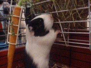Chow time!!! She just loves her carrot greens... Forget about the orange part!!