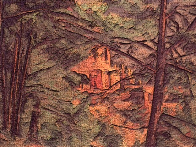 Here's a Cezanne painting I scanned from a small picture book and then rendered using a bump map overlay of the picture, giving it a 3D-ish paint finish so real it looks like the original.