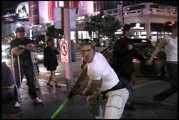 | A picture of Ray Park on the streets doing his moves with his trusty lightsaber. | |||||||||||||||||