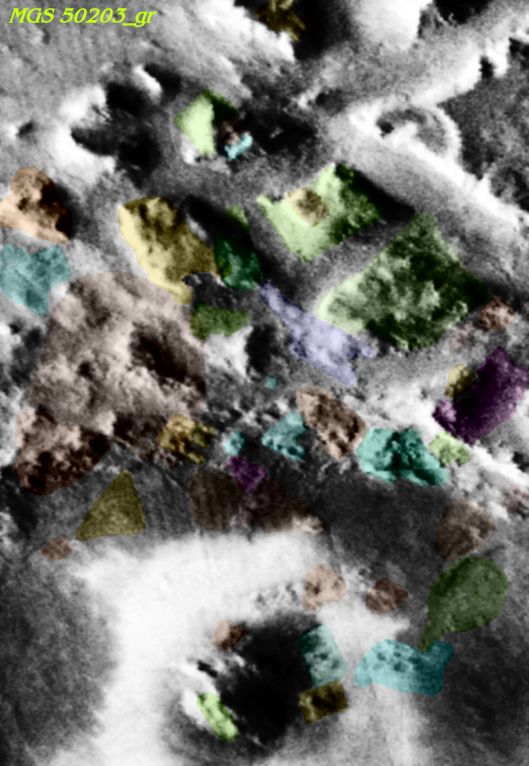 Just to the right of the golden "sphinx", is a form on an incline which is curiously encircled by a raised rim. In a ligher version, it may give the impression of being a rather unprecedented yet Egytian "serpent sphinx"... it reminds on rather of the "Cobra" formation, one of the more serious anomalies that is found in the upper parts of the MOC "hot dog and butterfly" image, one of MSSS's unwarranted "whimsical" diversive efforts.