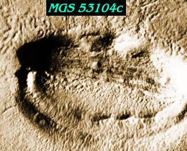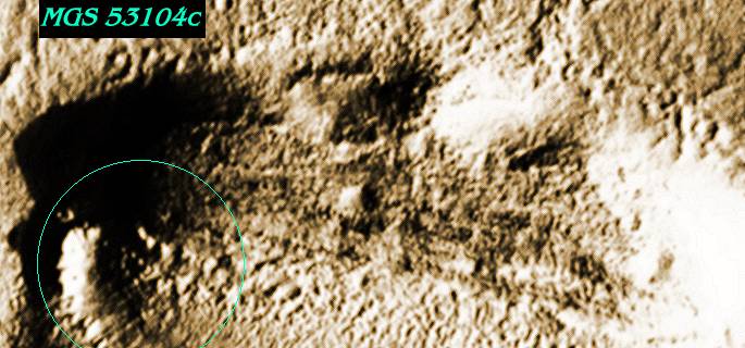 This appears in the same image as a half-face mesa identified earilier this year by anomalist Sam Kendall as a possible Cydonia-like face formation, appearing to be damaged or unfinished, whether by circumstance or by some deliberate design. Perhaps such a gesture of seeming incompleteness is not unlike the symbolic deliberacy that at times requires the imaging technique of taking half an image, inverting it, and placing the two halves together to create the whole, that is one of the centerpieces of the discoveries of George Haas and the Cydonia Institute.