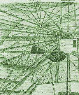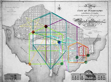 At right is an old design based on the ley lines that can also be found in "The New View Over Atlantis". Notice the remarkable similarity to the steet layouts and intersections in the old map of Washington, D.C.