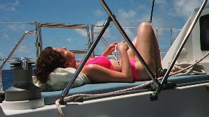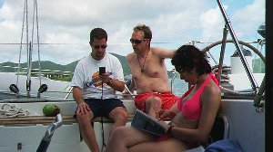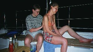 | Or is that a trainee crewmember trying to learn how to tie knots. |