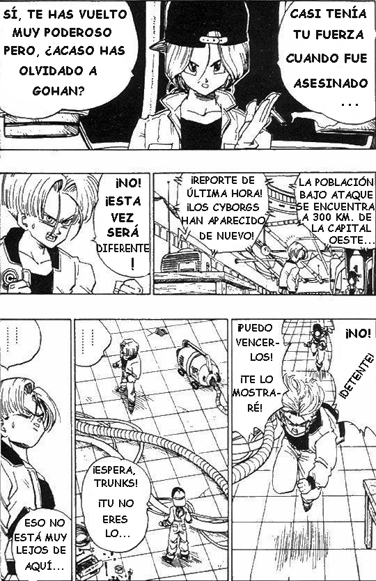 Aquí, para todos los visitantes, les muestro la historia de Trunks, poco antes de que viajara al pasado para derrotar al villano Freezer. Esta historia la puedes imprimir en hojas tamaño carta. [ Portada ] [ 1 ] [ 2 ] [ 3 ] [ 4 ] [ 5 ] [ 6 ] [ 7 ] [ 8 ] [ 9 ] [ 10 ] [ 11 ] [ 12 ] [ 13 ] [ 14 ] [ 15 ] [ 16 ]