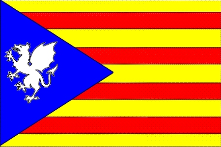 The triangle appears in all Catalunya's combat flags since centuries ago. The Dragon means, since middle age times, the Catalunya's fighting spirit.