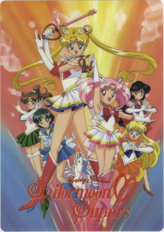 This is the next series of Sailor Moon. In Sailor Moon SuperS, the Outer Senshi are gone, but a new ally, a winged horse named Pegasus, comes to help the senshi. During an eclipse, 3 new new foes: Hawkseye, Fisheye, and Tigerseye appear. They are looking for beautiful dreams. Chibi-Usa fights with her mommy, Sailor Moon in battling them. Pegasus upgrades their powers. Sailor Moon transforms by saying, "Moon Crisis, Make Up!" This series centers on comedy than the storyline. Neherenia, the Queen and leader of the foes, make them the Amazoness Quartet.