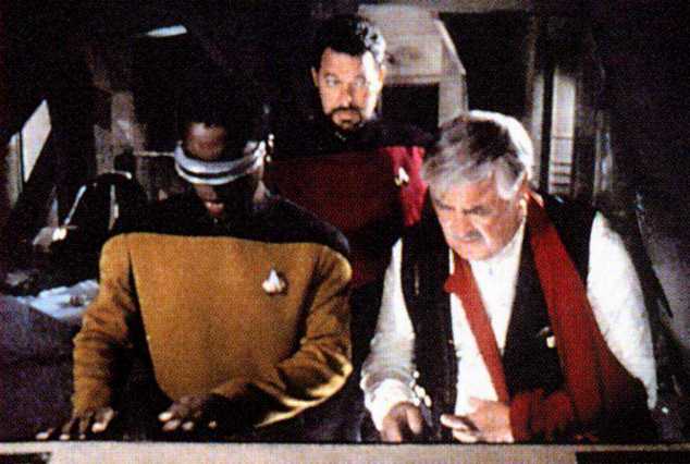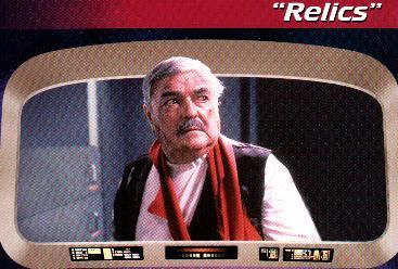 leutenant Commander Geordi LaForge downloads the recycling transporter pattern, and the legendary Captain Montgomery Scott materializes on the transporter pad exactly as he appeared seventy-five years before. As surprised as anyone to be standing in the 24th century, Scotty half-expects LaForge's Enterprise to be the one commanded by iames T. Kirk. A living anachronism, a depressed Scotty tries to find solace in a bottle of green alcohol and a holodeck recreation of the original Enterprise Bridge.