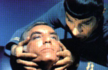 The uses of the mind meld vary. The first time Spock used it aboard the Constellation-class USS Enterprise, he was able to verify the identity of Dr. Simon Van Gelder, a madman who claimed to be the head ofa penal colony ("Dagger of the Mind"). Spock later used the mind meld to distract a guard beyond a locked door ("A Taste of Armageddon"); to lend confidence to his comrades ("Spectre of the Gun"); to mentally perceive the true form of a shape-shifted alien ("By Any Other Name"); to communicate with a non-vocal species ("Devil In the Dark"); and to discover his captain's consciousness trapped in another body ("Turnabout Intruder").