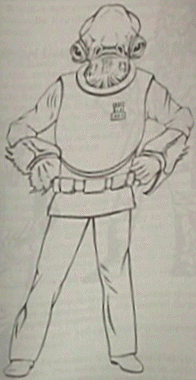 Il s'agit d'un Mon Calamari. Ancien esclave du Grand Moff Tarkin libéré par des agents rebelles, il convaint son peuple d'entrer en guerre au côtés de l'Alliance. A ses dons de stratège s'ajoute sa profonde connaissance des méthodes de combat impériales qu'il a étudiées lors de sa captivité. Ackbar s'avère rapidement indispensable à l'Alliance où il est conseiller de Mon Mothma. Il s'occupe de la réalisation d'un nouveau chasseur, l'aile B ( B-Wing ), participe à l'attaque surprise de la seconde Etoile Noire et, après l'avènement de la Nouvelle République, collabore, en tant que commandant en chef des opérations militaires, à l'établissement du nouveau gouvernement. Foncièrement intègre, il rechigne à traiter avec les contrebandiers et ne s'attire pas que des amitiés. Grâce à Luke et ses compagnons, il parvient à déjouer un complot visant à l'accuser de trahison.